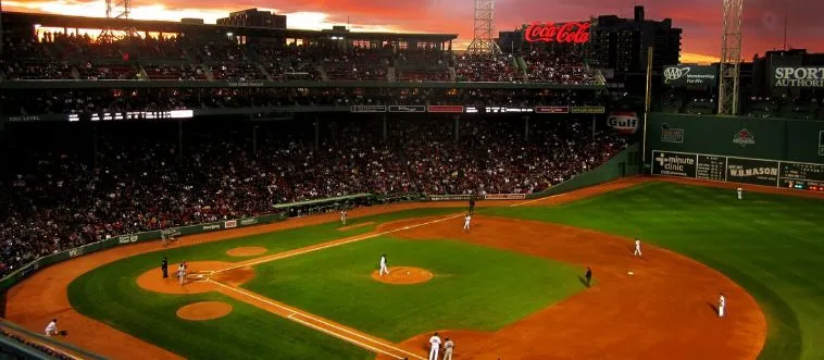 Which MLB team plays at Fenway Park, known for the Green Monster in left field?