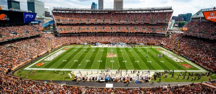 Which NFL team plays at Cleveland Browns Stadium, home of the Dawg Pound?